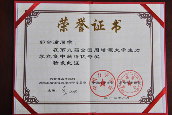 全国周培源大学生力学竞赛是教育部批准的全国唯一的大学生基础力学综合能力竞赛,由全国一级学会——力学学会和周培源基金会举办,两年一次。该项赛事被称为全国理工科大学生同台竞技的最高水平竞赛,目前已经成为了各大高校学生综合实力的重要参考指标之一。