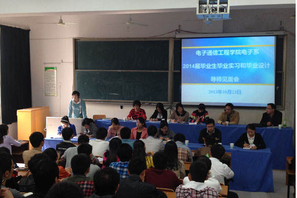 本网讯(通讯员 张笑鸿)11月初,电子通信工程学院各系分别给2014届本科毕业生开展毕业设计及毕业实习师生见面会。这是2014届本科毕业生毕业设计及实习系列动员活动之一。