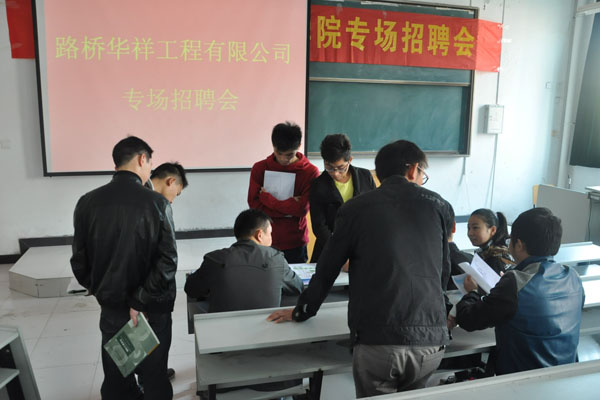 招聘会上,该公司人力资源部总经理韩修海介绍了公司情况,路桥华祥国际工程有限公司是交通部第一公路工程局下属的唯一具有对外经营权的公司;业务涉及公路、市政、港口、铁路、房建、轻轨、水电、交通工程、机电施工等九个行业领域;工程项目以京津冀为中心,覆盖了全国20余个省、区、直辖市,是一家颇具实力的央企。提问环节中,同学们就自己所关心的问题积极提问,例如:“公司发展潜力如何?”、“工作的地点及公司相关待遇问题”、“公司人才招聘的具体专业需求”等,韩修海对同学们所提的问题作了一一解答。下午面试环节,韩修海经过对简历的仔细审核,现场对较为优秀的同学进行了现场面试,经过初步筛选,目前已经与10余名同学初步确定了意向。