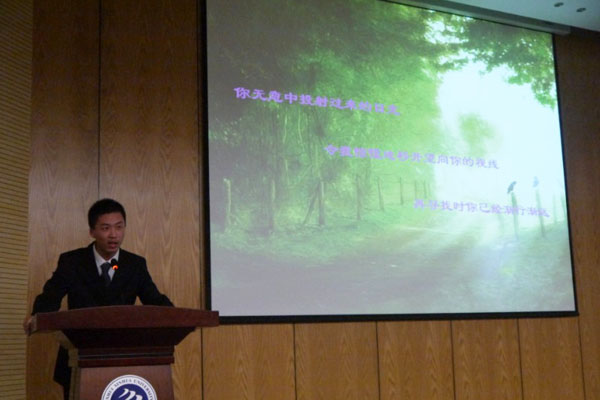 经过精彩的角逐,来自商学院的王贤君同学摘得了本次大赛的桂冠,文化与新闻传播学院的彭丹丹和商学院的付亚慧分别获得了第二名、第三名。土木与环境工程学院的王子岩、朱锦锋和商学院的张海林、张莉分别获得了最佳创意奖、魅力三行情书奖、最具文采奖和最浓情谊奖,通过大众评审投票,王贤君以最高票数获得了最佳人气奖。