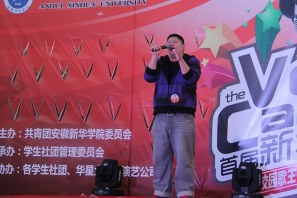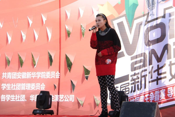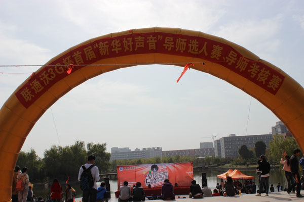 本网讯(通讯员 洪威)11月16日,首届“新华好声音”校园歌王争霸赛导师选人赛、导师考核赛在校如琴湖音乐广场精彩上演。央视青年歌手大奖赛安徽赛区通俗组冠军、安徽电视台《当红不让》栏目评委刘小雅,安徽电视台节目主持人大海,校团委洪威老师担任本届好声音的导师。比赛从中午12点一直持续到晚上10点,共有3000多名同学观看,现场气氛十分热烈。
