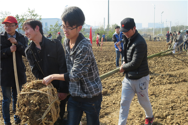 随后,全体参与人员在现场工作人员的带领下,一起学习了种植的要领。大家三个一群、两个一组,有的挖坑,有的扶苗,有的培土,植树现场一派热火朝天的景象。参与人员不顾一身土,一身汗,经过了近一个小时的辛勤劳动,种植了近三十棵树苗,洒下了一片绿的希望。
