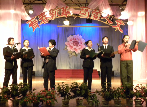 “虎跃龙腾江淮大地妆蜀山,莺歌燕舞春风旭日蔚人文”。 元月4日晚,人文艺术学院 “青春新华·梦萦人文” 2010年新年文艺晚会在学院大礼堂隆重举行。人文艺术学院相关负责人和千余名师生一道观看了晚会。