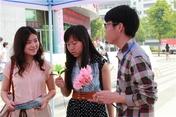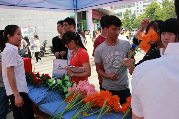 本网讯(娄容榕、张倩)关注西部教育,奉献自己的一片爱心。5月20日,由共青团安徽新华学院委员会主办、安徽新华学院青年志愿者协会格桑花工作站承办的“一元温心暨手工义卖”为主题的志愿活动在翰林广场成功举办。