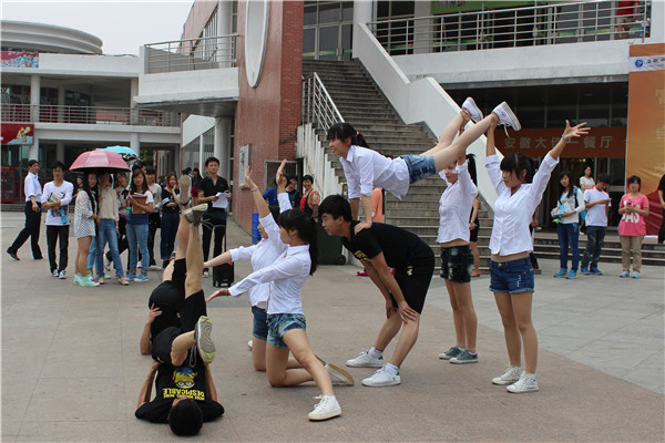 下课铃声一响,健美操“无敌队”队员迅速跑到翰林广场摆好造型。随着动感舞曲的奏起,整齐有力的动作,新颖别致的队形,青春奔放的热情迅速吸引了许多同学的围观。当灵动的音符戛然而止,“无敌队”队员已经消失无踪了。健美操协会的快闪表演受到了广大同学的喜爱。