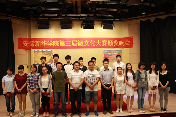 本网讯(学生记者 詹红)5月22日晚,安徽新华学院电视台第三届微文化大赛的闭幕式暨颁奖晚会在文化与新闻传播学院演播厅举行。校团委和宣传办公室的部分老师参加了闭幕式。