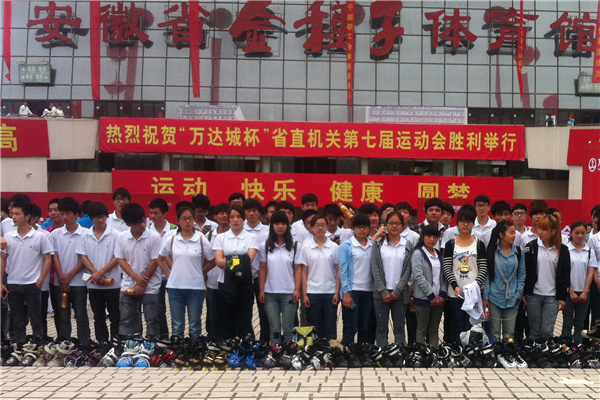 本网讯(王军)2014年5月安徽省直机关第七届运动会在合肥举行,我校轮滑队受运动会组委会邀请参与开幕式表演。