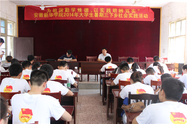 本网讯(学生记者 宛琼)为祖国勤学修德、以实践明辨笃实。2014年是新华学子赴泾县茂林镇开展暑期“三下乡”社会实践活动的第三个年头。今年6月,以“文化艺术”为主要实践内容的校团委实践队获批国家级重点社会实践团队。7月3日至10日,校团委实践队一行40人再次走进革命老区茂林镇开展暑期“三下乡”社会实践活动。实践队由校团委老师、校学生会、学生社团管理委员会、大学生艺术团、青年志愿者协会、大学生记者团的主要学生干部组成。此次实践活动开展了“重走新四军路、缅怀皖南事变阵亡烈士”、“农村经济社会发展水平调研”、“乡镇企业发展现状调研”、“文艺下乡”文化宣传服务、“我是小家教”教育帮扶、“关爱孤寡老人”志愿服务等6项主题活动。此次活动受到了团省委、地方政府高度关注。