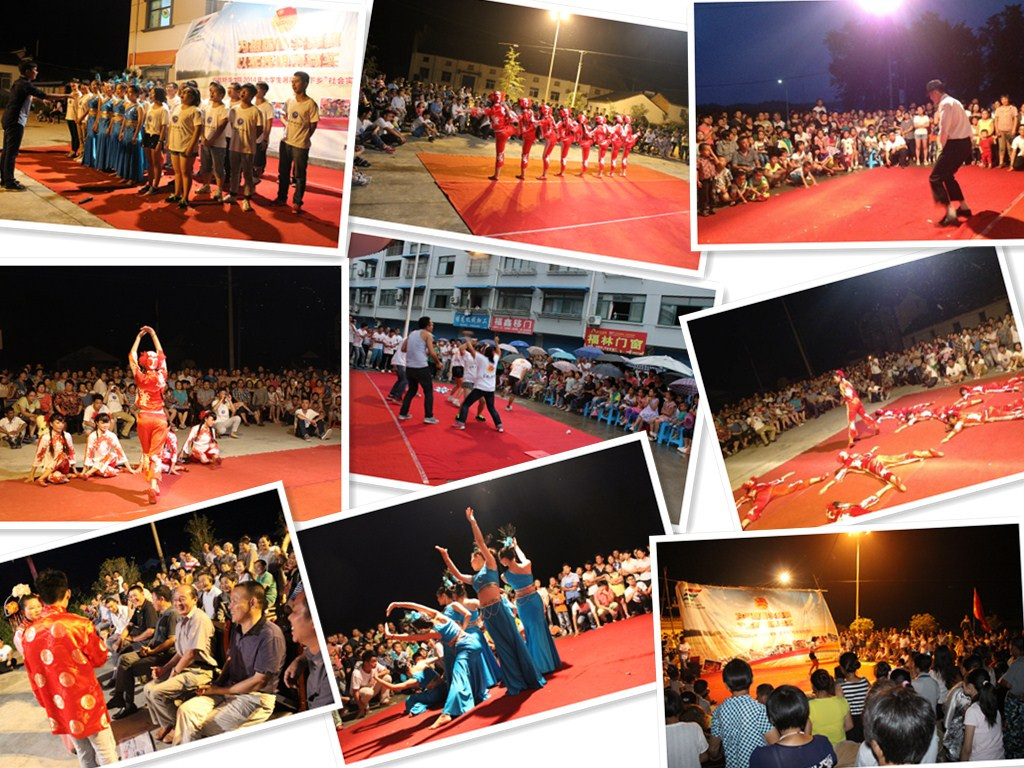 今年的“三下乡”实践,实践队的队员给茂林群众带去了4场文艺下乡演出,分别在茂林镇、濂长村和凤村进行,场场爆满。舞蹈、唱歌、小品等一系列精彩的节目给当地的村民带去许多欢乐。将文艺带到基层,将文化传播给群众。每场演出演员们都早早准备,化妆、换服装,其他队员就搭建舞台,各种道具都要早早准备好。等到演出正式开始,村民们陆续赶来,队员们才真正开始忙碌。演员们认真演唱着每一首贴近生活的歌曲,跳着优美的舞蹈,表演着欢乐的小品,赢得了在座观众阵阵掌声。住在濂长村的一位徐奶奶开心地说:“这大山的村子里,一年都是平平淡淡的,你们这群大学生来了之后,给我们表演节目,这里一下子就热闹起来了!”文艺演出在基层,快乐行走在乡间。