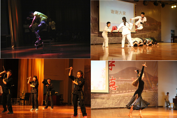 随后,我校在全国大学生体育竞赛中获得佳绩的学生代表潘晓敏、徐慧丽、苏雅莉和王新慧依次上台发言,他们和在座新生分享了自己结缘体育运动、参赛备战并取得荣誉的经历与体会。“能够代表学校参加全国大学生体育竞赛,我感到十分自豪,也很感谢学校领导、老师的鼓励和帮助,希望学弟学妹们能够不断奋斗,用行动证明自己。”获得2014年省首届高校轮滑赛亚军的潘晓敏微笑着说道。作为2014年全国大学生跆拳道锦标赛第五名,徐慧丽向在座观众分别介绍了跆拳道礼仪、跆拳道作用及自己学习跆拳道的心得。来自药学院2013级获得2014全国体育舞蹈比赛女子六人组团体舞冠军的苏雅莉优雅地走上台,莞尔一笑道:“大学是一个展现自我的舞台,只要大家不断地努力,就能有所收获”。 动漫学院全国五子棋大学生个人赛女子组冠军王新慧同学在场上感慨道,人生如棋,耐心、细心、恒心是下棋之道,亦是处事之道。学生代表们激情澎湃地演讲配以生动形象的图片展示,博得了台下阵阵掌声,会间穿插的轮滑表演、武术表演、拉丁舞表演和五子棋现场对弈更是令会场高潮迭起。