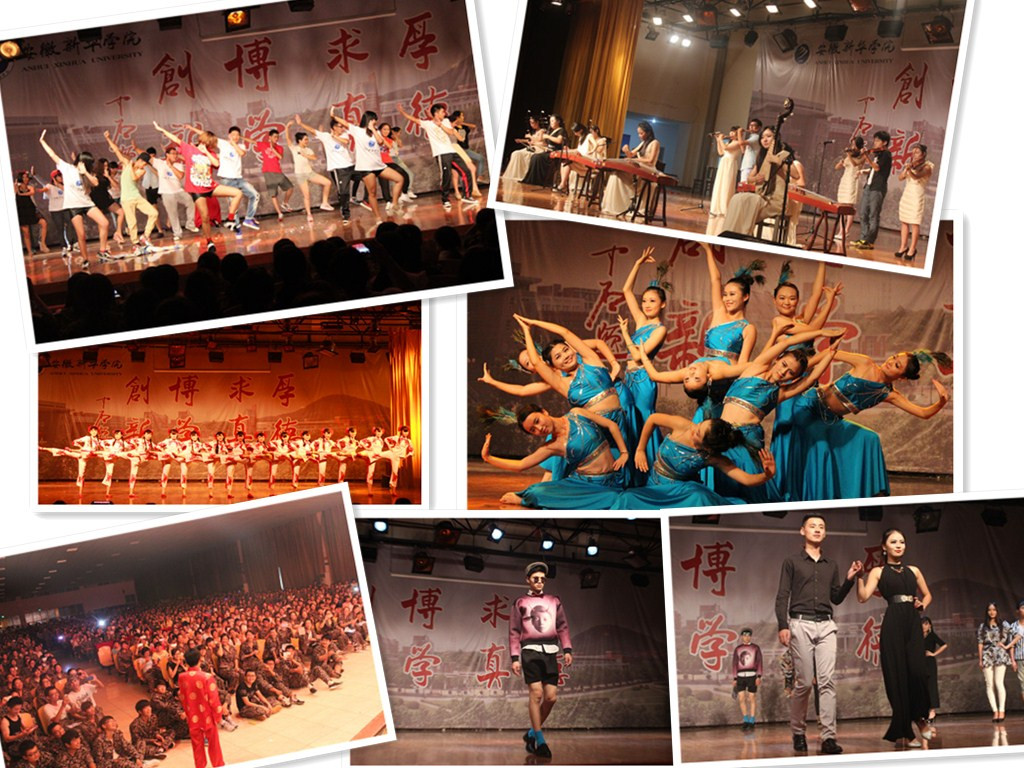 演出在新轨乐队的摇滚乐中拉开帷幕,歌曲《倔强》表现了年轻的大学生追寻梦想的精神;舞蹈《剪纸姑娘》惊艳全场,《勿忘心安》《喜欢你》《一起摇摆》等歌曲串烧掌声不断;相声、模特走秀、器乐合奏、街舞串烧等节目轮番上阵;特邀嘉宾中国达人秀安徽赛区冠军管研老师为新生献上的POPIN舞蹈震撼全场。演出在艺术团全体人员演绎的创意舞蹈《你是我的小苹果》中结束。在现场氛围感染下,2014级新生踊跃自荐上台表演,展示自己的拿手技能。来自商学院市场营销专业的胡正靖诙谐的口技表演惹得观众笑声不断,他说:“艺术团的表演给我们军训生活带来了欢乐,舒缓了我们在辛苦地训练下的紧张心情,看到学长学姐们专门为我们准备的演出,让我很感动,我现在开心地已经不知道该说什么了。”大一新生董立家在接受记者采访时说:“艺术团的表演给我们军训生活带来了不少欢乐,同时看到了师兄师姐们专门为我们准备的演出,很亲切也很感动。”