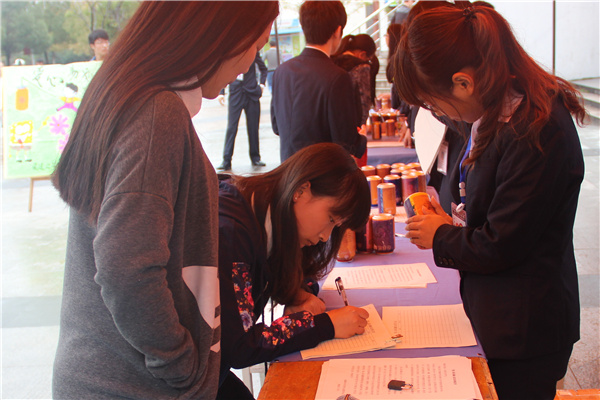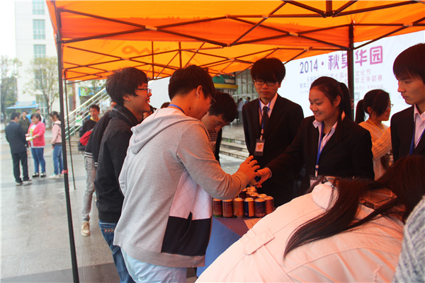 本网讯(学生记者 陈亮)10月29日中午,我校青年志愿者协会格桑花工作站在翰林广场和中快广场设立展台向全校师生发放印有格桑花西部助学宣传标语的易拉罐,希望全校师生共同帮助西部的孩子。