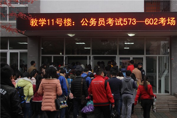 本网讯(孙宏毅)11月30日,中央机关及其直属机构2015年度考试录用公务员笔试在我校顺利举行,来自全省各地6000余名考生来我校参加了考试。