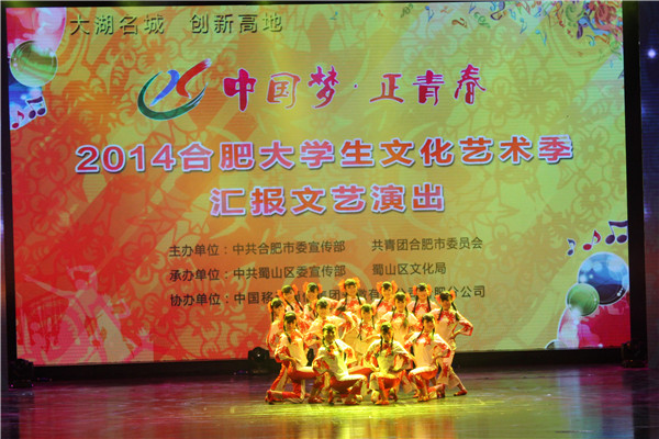 本网讯(通讯员 洪威)12月6日下午,“中国梦·正青春”2014合肥大学生文化艺术季汇报文艺演出在合肥大剧院举行。我校大学生艺术团舞蹈《剪纸姑娘》荣获舞蹈大赛最佳表演奖,并受邀参与汇报演出。省市领导与在肥高校大学生一同观看了演出。