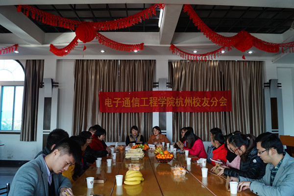 12月5日下午,电子通信工程学院副院长钱颜娇一行六人前往杭州召开学生就业座谈会,并参加杭州校友会成立仪式。2011届、2012届、2013届及2014届近四十名同学从四面八方早早赶到约定地点,许久未见的同学们欢聚一堂,激动地交流各自的近况和感受,气氛热烈,欢声笑语不绝于耳。特别是2009电子信息工程的闫云飞同学,为了能参加此次校友会,提前半天乘车赶到约定地点等候母校的老师。在校友会成立仪式上,同学们踊跃发言,分享了自己工作中的酸甜苦辣,结合工作实际,对课程设置提出自己的见解和建议。他们并纷纷表态,能参加座谈会和母校老师的来访感到非常激动,没想到自己进入工作岗位后仍能得到母校的关心和帮助,请母校和老师放心,他们一定会在工作中努力表现,积极进取,不会让母校失望。