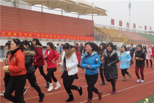 本网讯(通讯员:姚晶晶)根据省教育厅、安徽省体育局、共青团安徽省委下达《关于开展第八届全国亿万学生阳光体育冬季长跑活动》的有关要求,我校于12月11日下午,在祥云体育场举行了 “安徽新华学院阳光体育冬季长跑活动启动仪式”,各院系的学生代表参加起跑仪式。