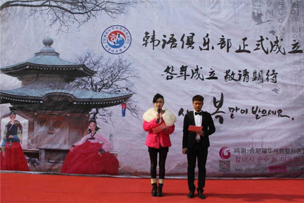 本网讯(学生记者 宛琼 陈亮)1月7日中午,我校韩语俱乐部在翰林广场举行成立仪式,这也是我校成立的第42个社团。韩语俱乐部为热爱韩语的同学们提供更好的交流平台。