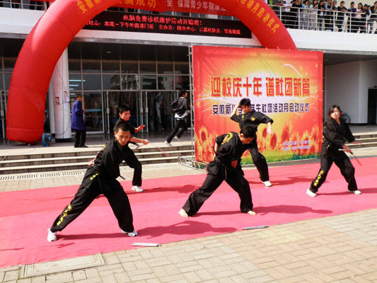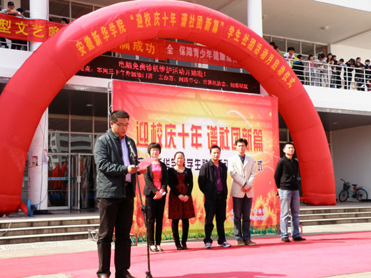 学生处副处长、团委副书记马琪在启动仪式上代表校团委对此次社团文化月活动的开展表示热烈祝贺,总结和肯定了本学期自开学以来我校社团开展的一系列工作,并对社团工作提出了几点希望,他指出:在此次十年校庆之际,校团委将以此为锲机,围绕学校的中心工作,采取多种措施,切实发挥社团在推进大学生素质教育中的作用,进一步加强管理,深入研究社团良性发展机制,强化创新意识,突出社团特色,为建设校园文化起到积极作用。最后,伴着绚丽的礼花,马书记宣布“迎校庆十年,谱社团新篇”安徽新华学院学生社团文化月正式启动。