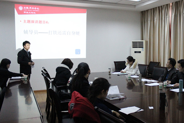 本网讯(通讯员:凌晨)3月5日下午,我校举办了2015年辅导员职业技能比赛选拔赛。副院长马凤余,人事处、学生处、教务处等相关部门负责人出席本次比赛并担任评委。