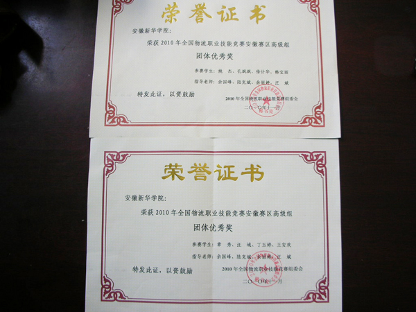 2010年11月29日-30日,商学院在学院的指导下,积极组织和宣传,在2008级物流管理专业选拔了8名学生组成参赛队伍,由余国锋、陆克斌、余丽婷、汪斌老师担任指导老师,在安徽工商职业学院参加了2010年全国物流职业技能竞赛。 经过激烈角逐,商学院参赛队伍脱颖而出,荣获本次物流技能大赛优秀奖,展示了我院物流专业的办学实力和学子良好的知识技能素养。(文/贾婷婷,图/贾婷婷)