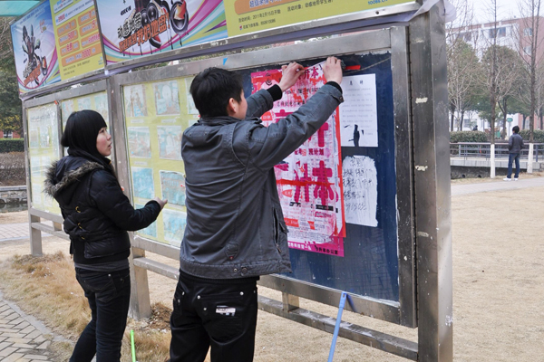 记者在采访过程中看到,每个人手里都拿着工具刮除墙壁上、电线杆上、宣传栏上张贴的小广告。在中快广场的宣传栏上,小广告被清理后已经贴上了学习雷锋的宣传画。在翰林广场信息工程学院2010级学生还拉开横幅举办学雷锋签名活动。