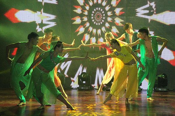 此次演出,舞蹈团热情奔放的印度舞《旋转婆罗多》作为压轴节目获得了现场阵阵掌声。由于舞台场地限制,演出前2个小时,在艺术团团长汪陆斌和舞蹈团团长刘绪丽的带领下,大家迅速重新调整了人员和队形,丝毫没有影响整支舞蹈的表演效果。晚会结束后,学生处处长、团委书记朱兆健慰问了大家,他对同学们的精彩表现表示赞赏,并鼓励大学生艺术团应多与外校交流。在此次晚会中,我们也欣赏到了其他高校较为新颖的节目形式。今后,大学生艺术团将不断加强与外界的艺术交流,促进我校大学生艺术团不断成长,不断进步。