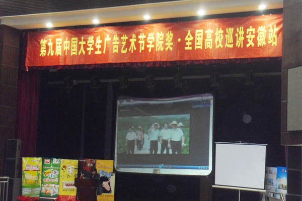 4月6日,全国大学生广告艺术节学院奖全国巡讲合肥站在安徽大学新校区艺术学院小礼堂召开,为了让我院广告学专业学生更好的为全国广告艺术节学院奖大赛做准备,争取在大赛中获得更好的成绩,文化与新闻传播学院组织广告学专业学生三十余人前往安徽大学参加此次活动。