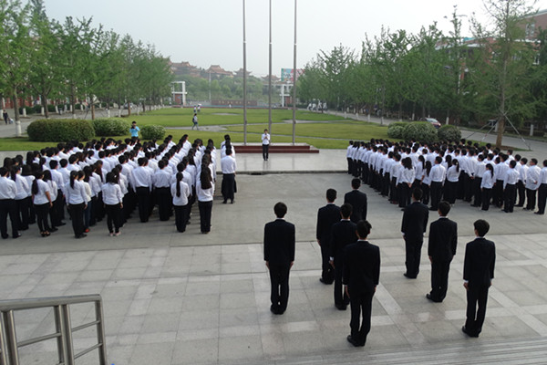 清晨7点整,全体人员统一着装,集合完毕,国旗护卫队迈着整齐的步伐,护送国旗入场。伴随着嘹亮的国歌声,五星红旗在朝阳下冉冉升起。随后,同学们在红旗下庄严宣誓。