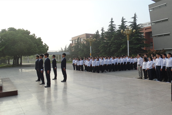 本网讯(学生记者:王友雅 摄影:焦爱玲)弘扬“五四”精神,奏响青春之歌。5月4日清晨,我校举行了庄严而又隆重的“五•四”青年节升旗仪式。团委书记、学生处处长朱兆健,团委副书记吕翔和各校级组织、二级学院团总支、学生会主要学生干部等,以饱满的热情参加了本次升旗仪式。