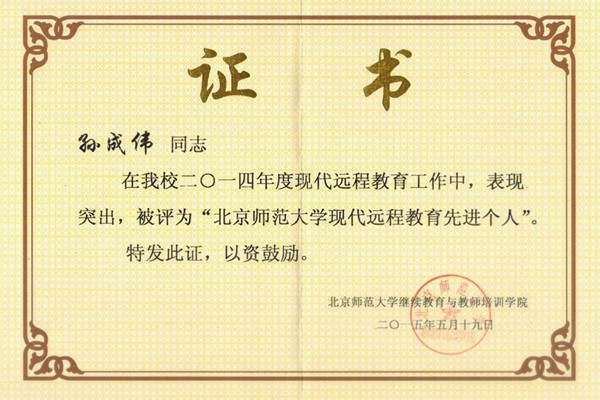 我校获评2014年度“北京师范大学现代远程教育优秀学习中心”称号