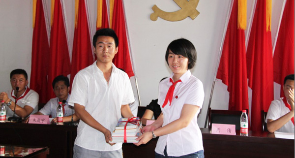 在全体人员的共同见证下,周倩向任圩村小学校长转交了所募集的书籍,钱颜娇与濉溪团县委书记赵焱共同为“安徽新华学院信息工程学院团总支爱心书屋”揭牌,随后钱颜娇代表捐赠方讲话,她表示,百年大计教育为先,安徽新华学院信息工程学院在加强团组织建设的同时捐赠“爱心图书”,开展文化下乡活动,为贫困留守儿童送去精神食粮。她勉励全体学生努力学习、认真读书,将来用自己的知识和行动回报社会,做祖国的栋梁之才。