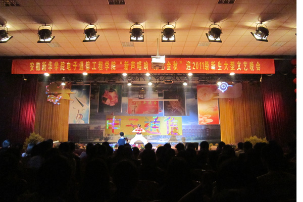 晚会以一段气势恢宏的展示新华发展、电院风采的视频拉开帷幕。紧接着热情洋溢的开场拉丁舞点燃了全场的激情。随后电子通信工程学院院长江谷传教授发表致辞,向广大新生介绍了电院发展史与已取得成绩,同时也表达了对电院2011级全体新同学最热烈的欢迎!
