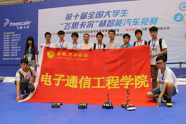 本网讯(通讯员:李长凯)7月17日至20日,第十届全国大学生“飞思卡尔”杯智能汽车竞赛在安徽财经大学举行,来自安徽省40余所高校的247支队伍参加了比赛。我校电子通信工程学院将参赛学子分为光电组、电磁组和摄像头组,经过激烈角逐,光电组、电磁组荣获安徽省赛区一等奖,摄像头组荣获安徽省赛区优秀奖。