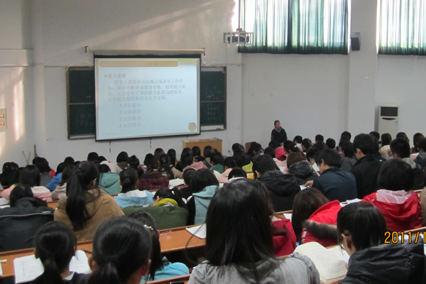 在本次讲堂中,杜娟老师还向全体文传学院学生干部、学生会成员一一展示了合肥学院外语系团总支、学生会的各种大型活动图片及优秀学子风采,让学生干部受益匪浅,语言生动活泼,赢得了在座所有学生的阵阵掌声。