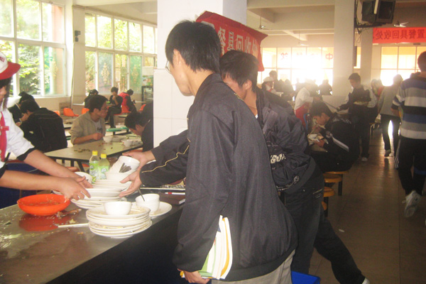 活动中,校学生会还组织安排学生会成员在食堂内进行“文明就餐”的督导,发现浪费粮食、不放回餐盘、打饭插队等不文明行为立即进行劝解和制止,并且在食堂内的显眼处张贴了“文明就餐”宣传横幅。通过工作人员的广泛宣传和有效监督,文明就餐取得显著的效果。食堂餐具回收处的工作人员朱雨蒙在接受记者采访时说道,希望广大学生在用完餐后主动将餐盘放到回收点,这不仅减轻了食堂工作人员的劳动负担,也为下一位就餐的学生提供一个良好的就餐环境。