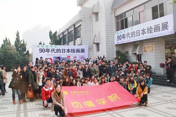 11月25日中午,中日友好“绘画嘉年华:90年代的日本绘画展”在我校动漫学院认知实习实训基地合肥久留米友好美术馆举行。日本驻华大使馆总领事佐治治,安徽省外事侨务办公室主任沙林森,及安徽省文联的相关领导出席了开幕式。我校动漫学院将这次画展作为学生的校外认知实训课程,专门组织了2011级动画专业和2011级动漫专业的学生前去参观。