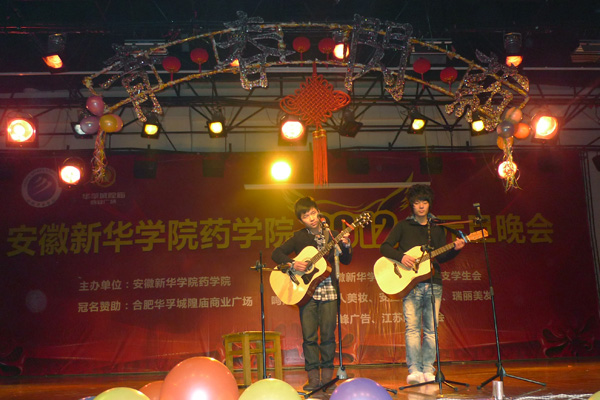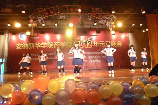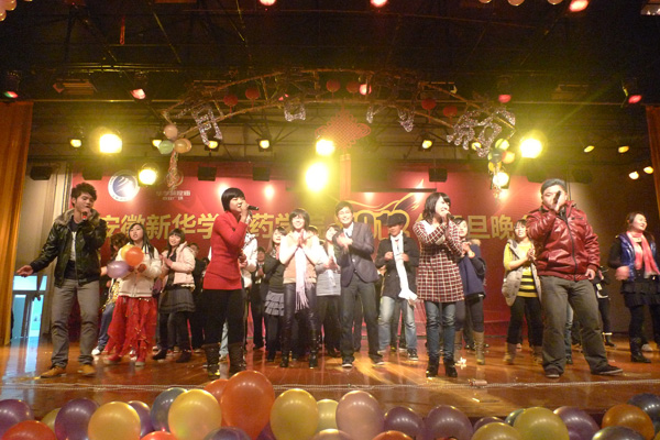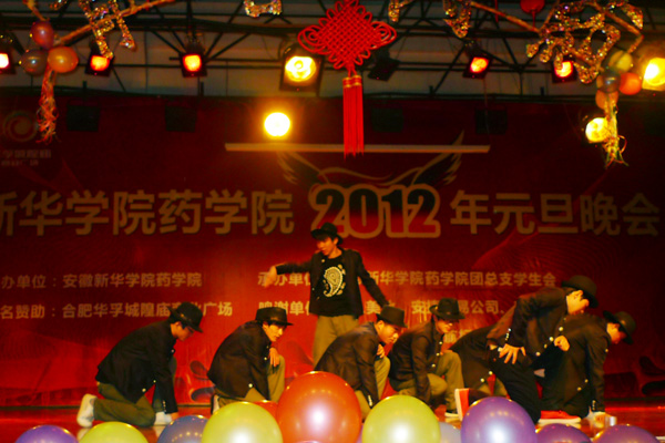 在中场互动环节,观众们积极参与,许多同学都得到了药学院赠送的小礼品。进入下半场,观众的热情依然高涨。2010年安徽新华学院才艺大赛冠军陈康同学的一首《听海》给大家留下了深刻的印象,恰如明日之星,光芒夺目;现代舞《重逢的世界》动感热辣,舞台效果美轮美奂;优雅的音乐声中,药学院辅导员和同学们合作朗诵《我们携手走过》,师生之谊深情流露,在这寒冷的冬日里显得温情十足;药学院话剧社自编自导自演的话剧《越雷越开心》贴近生活,幽默诙谐,逗得观众笑声连连。精彩的演出不时赢得场下阵阵掌声,将晚会推向一个又一个高潮。