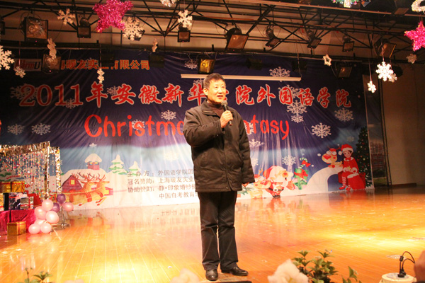 12月22日晚,独具外国语学院特色的圣诞晚会在大礼堂举行。本次以“Christmas Fantasy”为主题的晚会吸引了新华众多的热情观众,全场座无虚席,甚至走道也挤满了兄弟院系的同学。外国语学院副院长任静生教授和全体外院师生共同观赏了本次晚会。