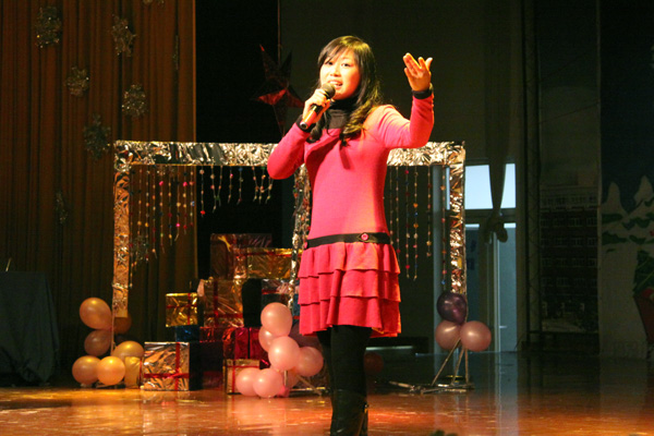 素有外国语学院“舞王”之称的杨光带来了一段精彩的拉丁舞表演,激起了全场的轰动。在随后的舞蹈和歌曲串烧中,让现场观众完全融入到了圣诞的热烈氛围中。整个大礼堂充满着浓浓的节日气息。