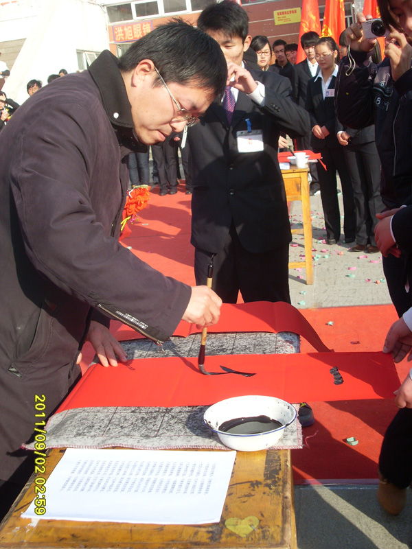 活动一开始,由江健龙、王维华两位书画协会的指导老师现场开笔,分别为书画协会题了两副对联,吸引了众多学生的驻足。天气虽然寒冷,但现场气氛十分热烈,广大学生对活动的开展也表现出极大的热情,纷纷前来排队领取春联。本次向全校师生免费赠送的春联,均由书画协会成员当场书写,小篆、隶书、行书、草书,形式多种多样,内容丰富多彩。活动从上午九点半一直进行到下午两点,据统计,此次“迎新春 赠春联”活动共向华园师生赠送了将近1000副春联。