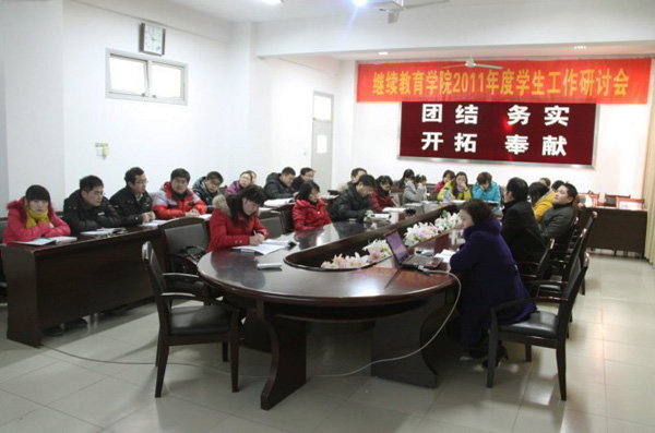 为全面总结继续教育学院2011年度各项工作完成情况,制定2012年工作计划,理清工作思路,为2012年教育教学各项工作打好基础,1月6日下午,继续教育学院召开2011年度工作总结暨学生工作研讨会。