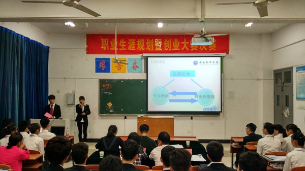 从初赛脱颖而出的就业组5名同学及创业组5组同学分别上台进行了自我展示,其中韩磊同学设计自己以后要成为优秀的软件工程师,在毕业后自愿报名西部,把自己所学的知识带到西部,投身西部的经济建设中,给在场师生留下深刻的印象。创业组比赛中,参赛同学结合所学的专业知识,联系目前的社会实际,经过调研成立了柏威服装定制公司、海阔天空勤工助学中心、雨花园咖吧等公司,参赛选手现场介绍了公司概况、市场宣传、资金投入、风险应对,充分体现了当代大学生积极向上的精神面貌,精彩的展示博得在场师生的阵阵掌声。