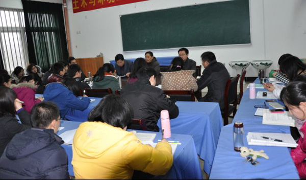 接下来,教学副院长蒋亚龙传达了院长石秀和在2012年教学工作会议上的讲话精神。2012年要紧紧围绕本科教学工作合格评估,进一步加强内涵建设,完善教学质量保障体系,全面提升教育教学质量。一是要进一步统一思想,提高认识,牢固树立教学中心地位和“质量至上”的观念;二要加大教学投入,加强师资队伍建设,为提高教学质量打好基础;三是要深化教学内涵建设,狠抓规范管理,确保教学质量全面提高;四是要强化责任意识,确保层层落实,全力以赴做好评建工作。随后,蒋亚龙和行政副院长计勇带领老师们共同学习了《土木与环境工程学院2012年工作计划》,并结合计划安排,对2012年的具体工作做了部署。顾广娟老师解读了《土木与环境工程学院迎接本科教学评估工作方案》,方案明确了迎评的领导机构组成,并对各组的人员构成及主要工作职责做了明确规定,为土木与环境工程学院员工明确评估职责,落实评估工作打下了良好基础。