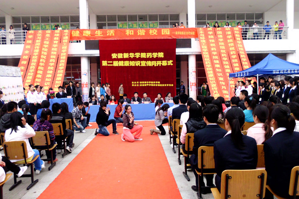 为普及校园健康知识,加大健康知识宣传力度,营造健康、和谐的校园生活氛围,3月29日中午,由安徽新华学院药学院主办的“第二届健康知识宣传月系列活动”在翰林广场正式拉开帷幕。
