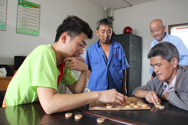 为了培养当代大学生的社会实践能力,践行“两学一做”学习教育,弘扬中华民族传统美德,实践队来到了山南镇沈店养老服务中心慰问老人。实践活动小组成员们为老人们奉上了精心准备的节目,如:《女驸马》《新贵妃醉酒》等脍炙人口的选段,还有拉丁舞、街舞、广场舞等演出。最后一首《没有共产党就没有新中国》大合唱更是赢得了老人家们的一致好评。演出结束之后,同学们来到老人居住的房间,帮他们洗衣服,陪他们下棋聊天,充分贯彻了“两学一做”重要指示精神。受访的何爷爷说:“为了让儿女好好工作,七年前已经来到了这里,平时喜欢看看电视剧,跟同伴们一起散散步,生活很平淡但还挺习惯的”。从老人的谈话中可以看出他们希望儿女陪在身边,实践队员们的到来给他们带来了家的温暖。