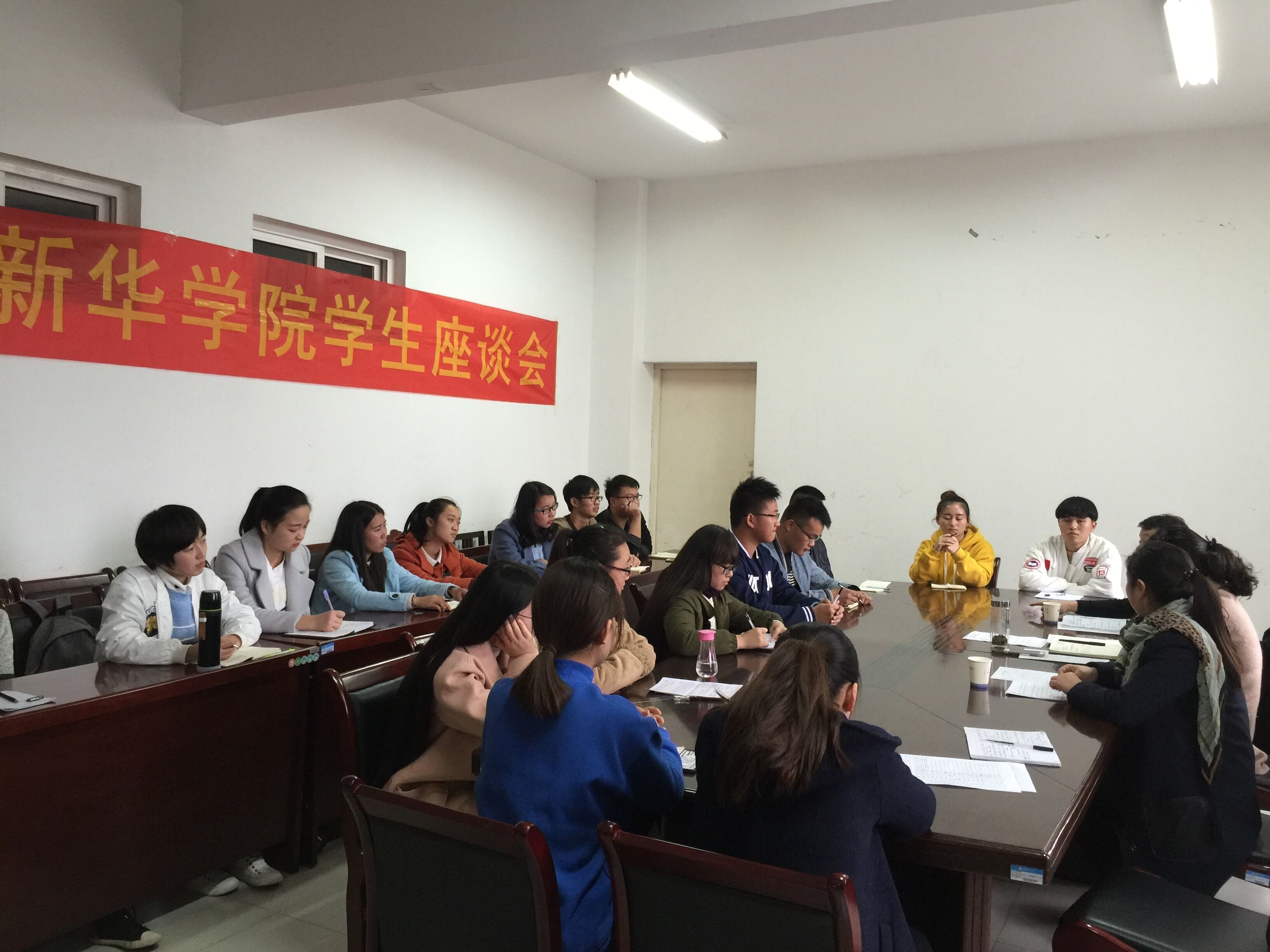 本网讯(通讯员:刘雪)11月9日下午,教务处组织召开安徽新华学院2016-2017学年度第一学期期中教学检查学生座谈会。教务处、总务处、学生处有关老师及各二级学院20名学生代表参加座谈会。