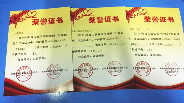 我校大学生记者在2016年度安徽省高校校园“好新闻奖”评选中喜获佳绩