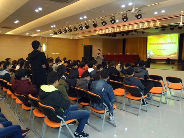本网讯(通讯员:肖华君)12月9日,科技学院优秀学子报告会在小礼堂举行。本次报告会邀请了自考学习代表2013级双证会计专业优秀学子田燚、创业代表合肥云哲信息科技有限公司董事长朱磊、就业代表安徽电视台导视频道节目主持人方伟睿为全体2016级新生作报告。科技学院全体学工人员参加本次活动。