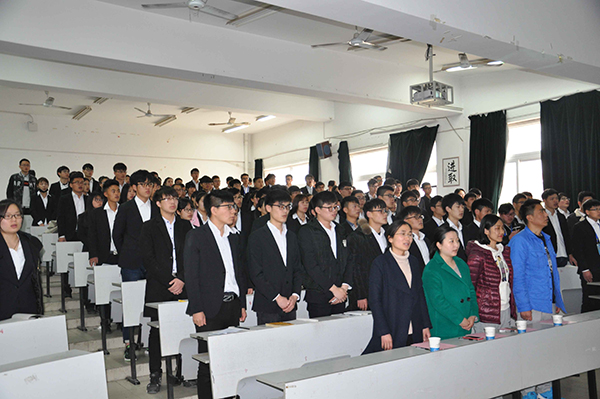 典礼伊始,学员全体起立,奏唱团歌,嘹亮的歌声在教室回响,体现了土木与环境工程学院学子积极向上的精神风貌。