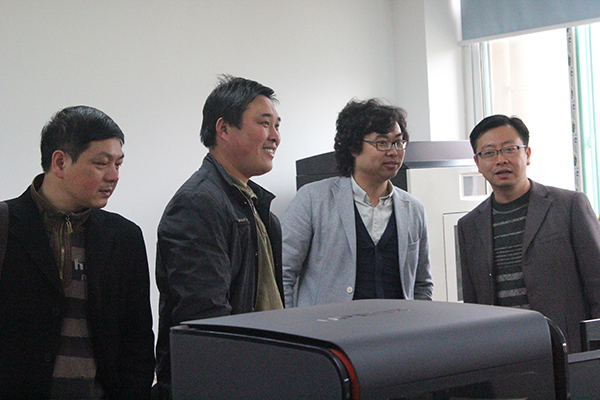 会后,计勇一行实地参观了3D打印实验室、陶艺实验室、环境艺术工作室、作品展示厅,并与工作室、实验室教师现场交流,了解实验室建设、使用情况。